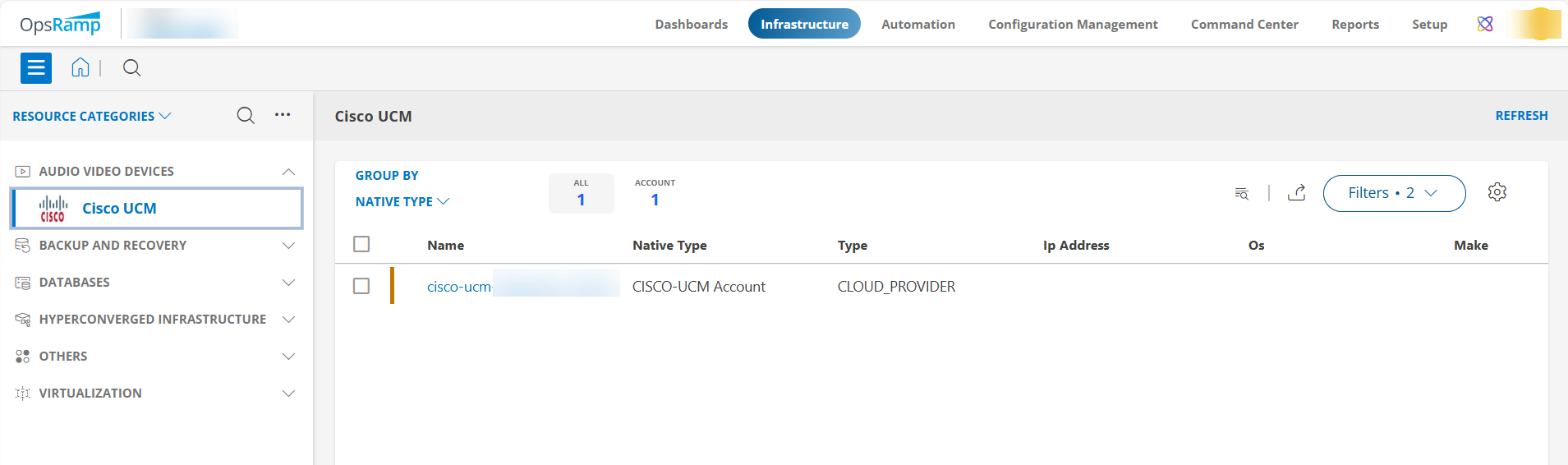 - Navigate to Infrastructure > Search > AUDIO VIDEO DEVICES > Cisco UCM.